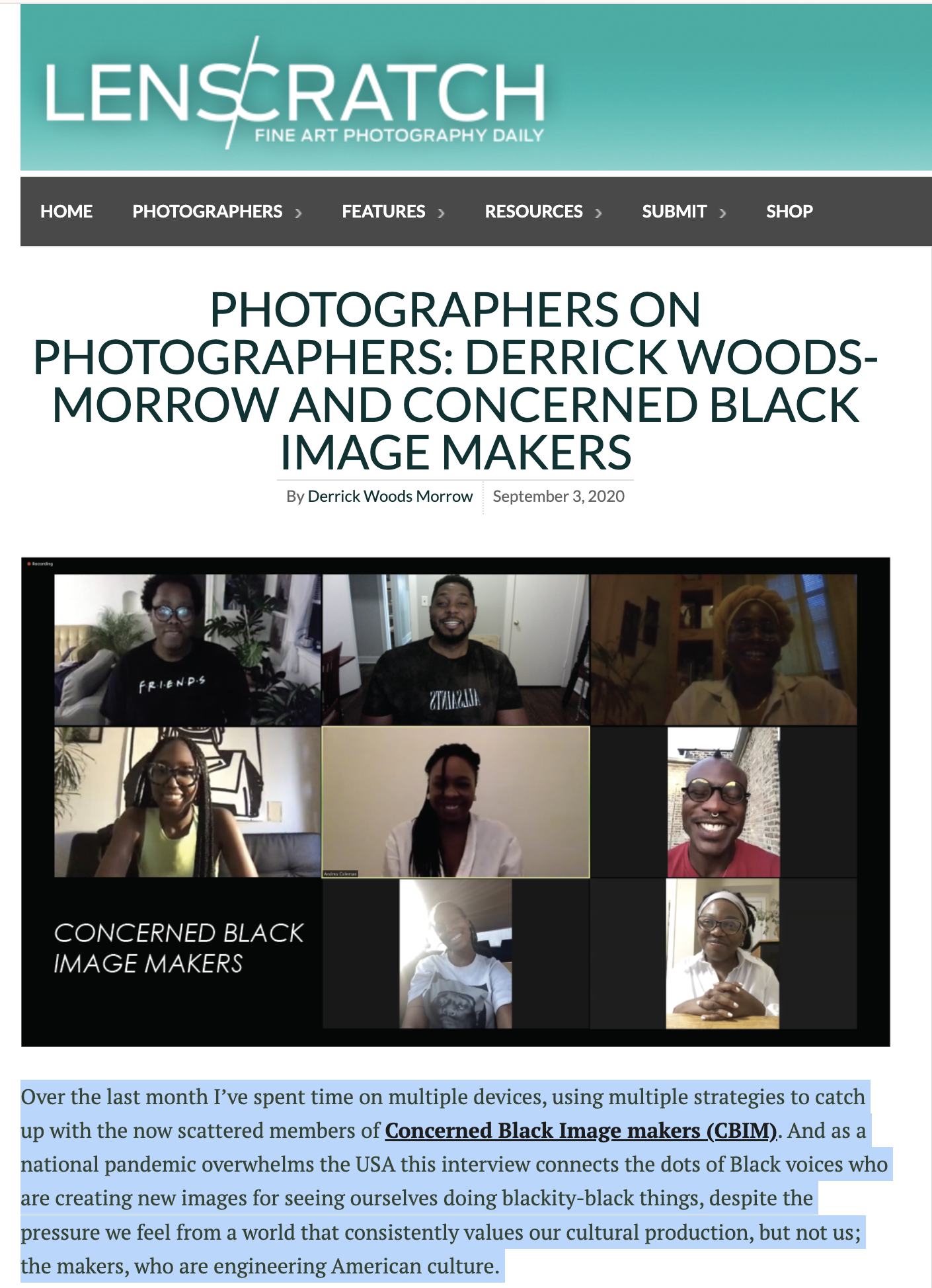 Over the last month I’ve spent time on multiple devices, using multiple strategies to catch up with the now scattered members of Concerned Black Image makers (CBIM). And as a national pandemic overwhelms the USA this interview connects the dots of Black voices who are creating new images for seeing ourselves doing blackity-black things, despite the pressure we feel from a world that consistently values our cultural production, but not us; the makers, who are engineering American culture.
