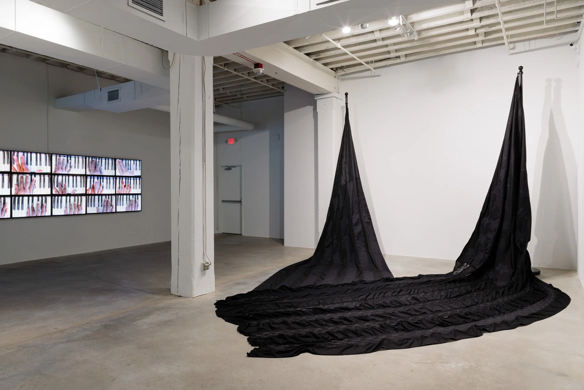 Installation view of Black Prairie Septet from Paul Stephen Benjamin: Black of Night, 2024. On view at Bemis Center for Contemporary Arts, May 18-September 15, 2024. Courtesy of Bemis Center for Contemporary Arts. Photography by Colin Conces.